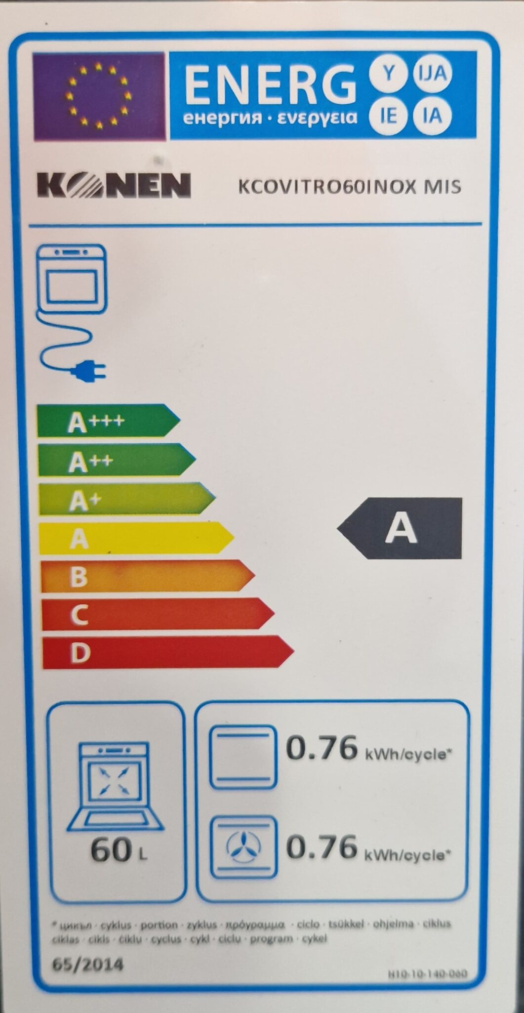 Consumo de energía: 0.76 kWh/ciclo