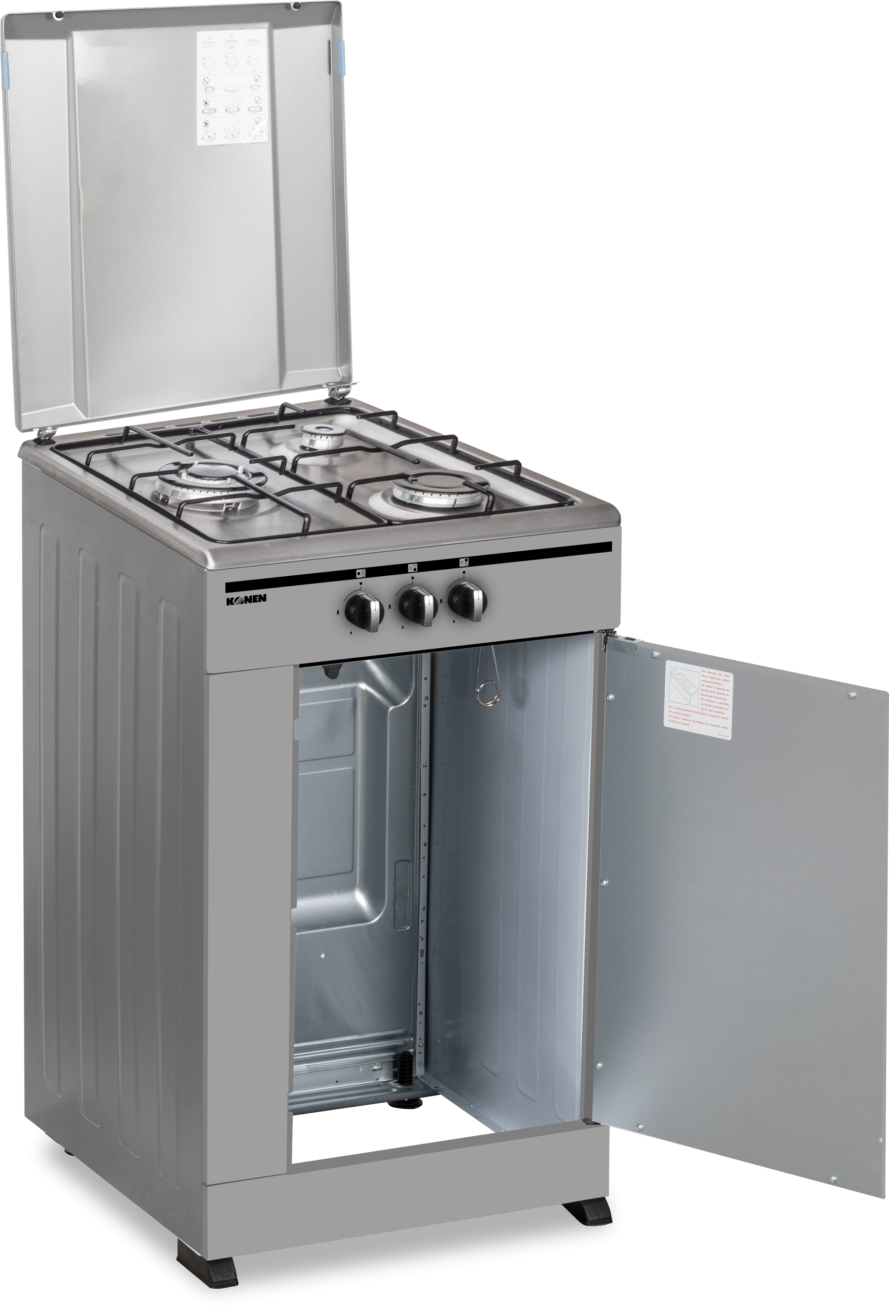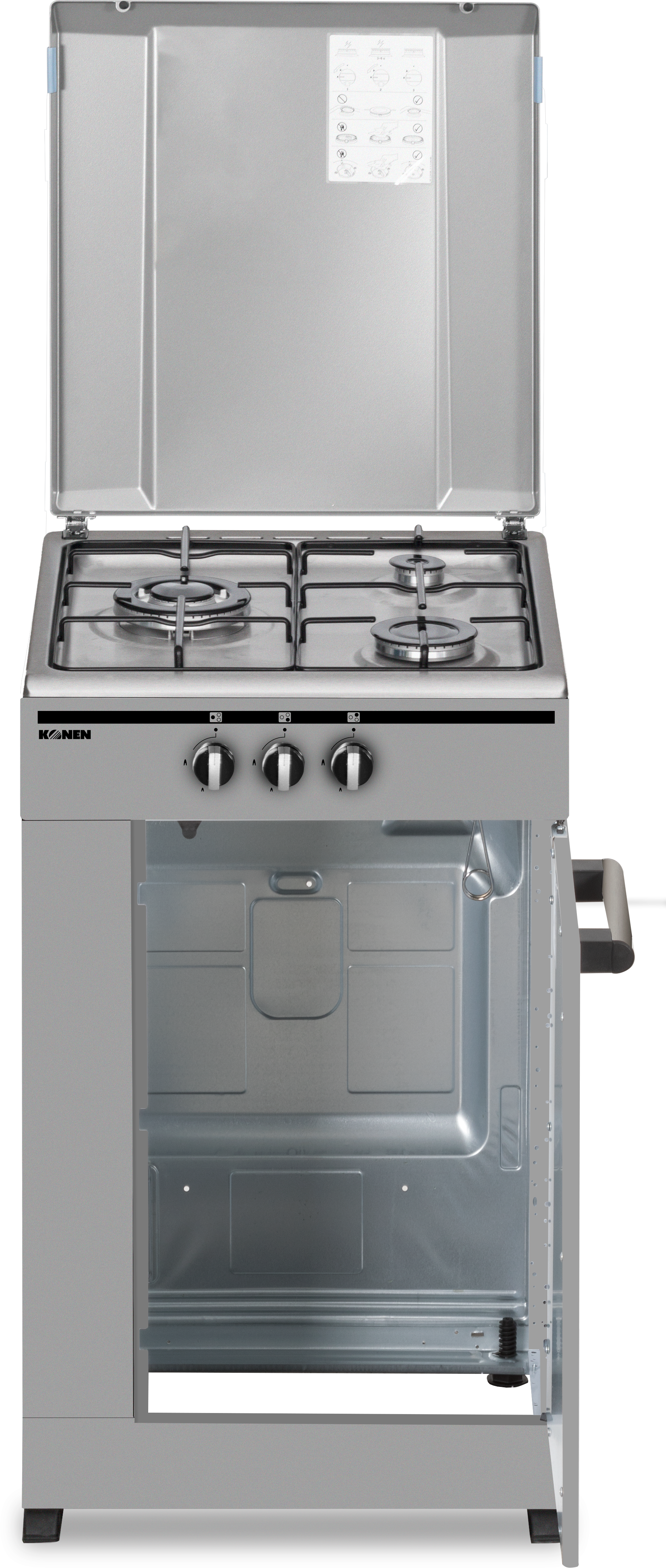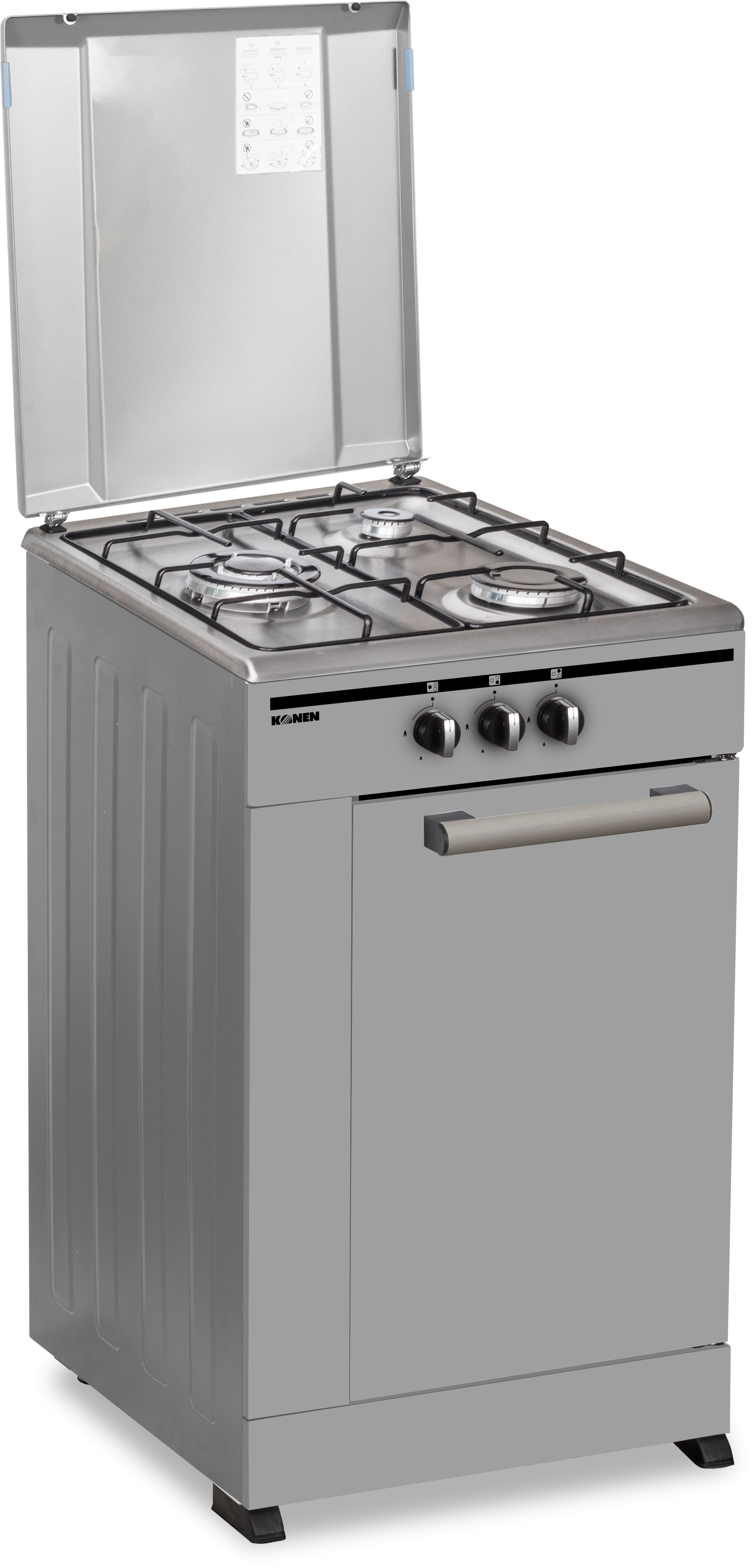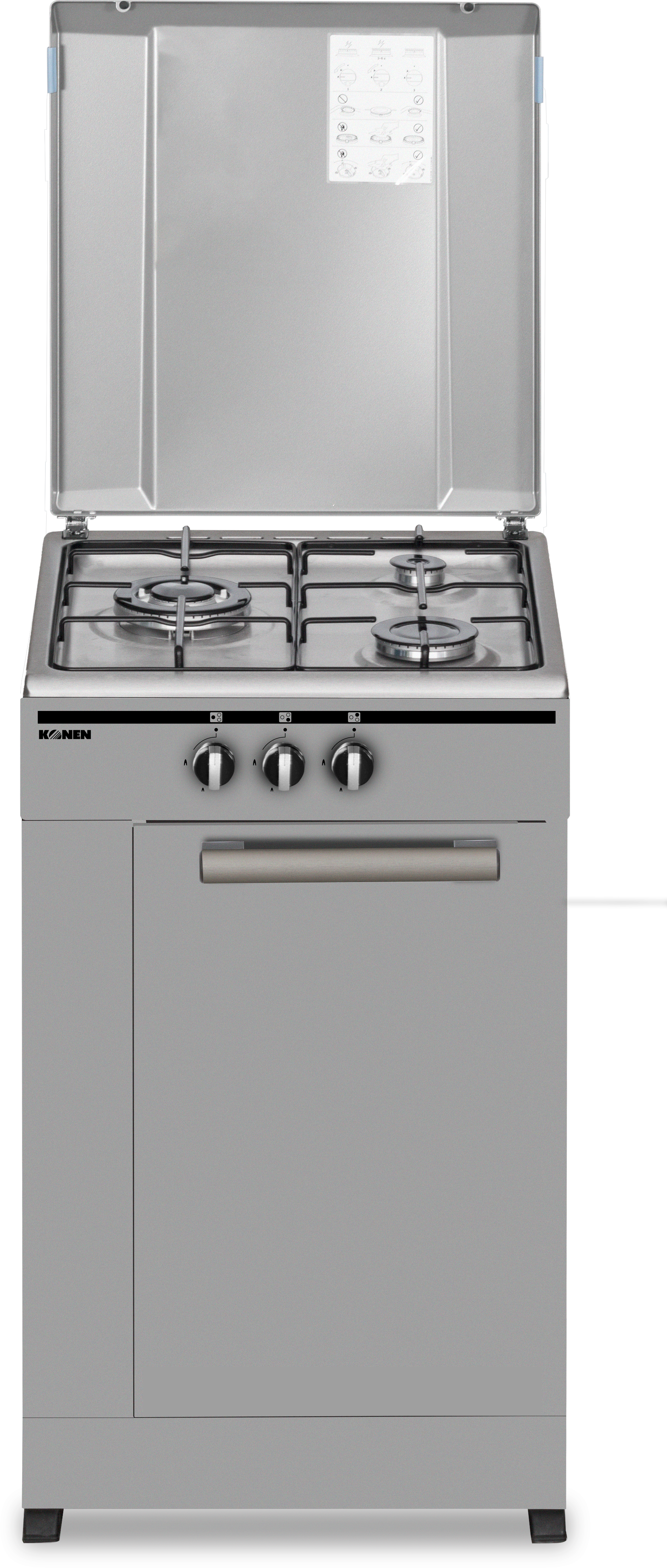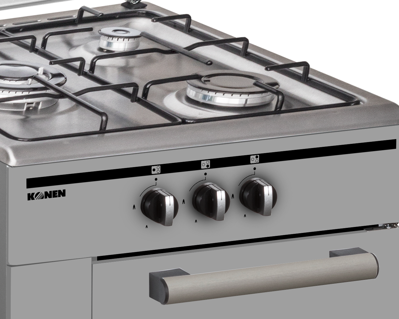 La cocina de gas Konen KohornilloInoxSif ofrece tres zonas de fuego para una cocción konen eficiente y precisa. Su diseño en acero inoxidable garantiza durabilidad y fácil limpieza, mientras que su portabombona facilita la instalación y uso en cualquier espacio. Ideal para chefs exigentes.