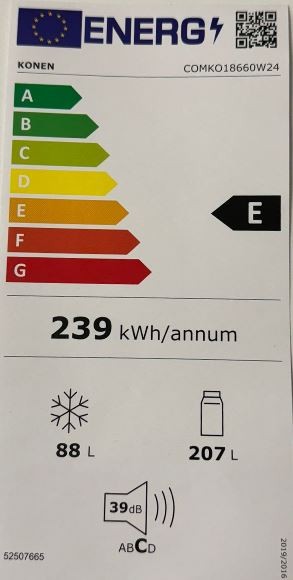 Accesorios frigorífico: 3 baldas, 1 cajón fruta y verdura, 2 estantes en puerta, 1 estante portabotellas, 1 cubitera, 1 huevera