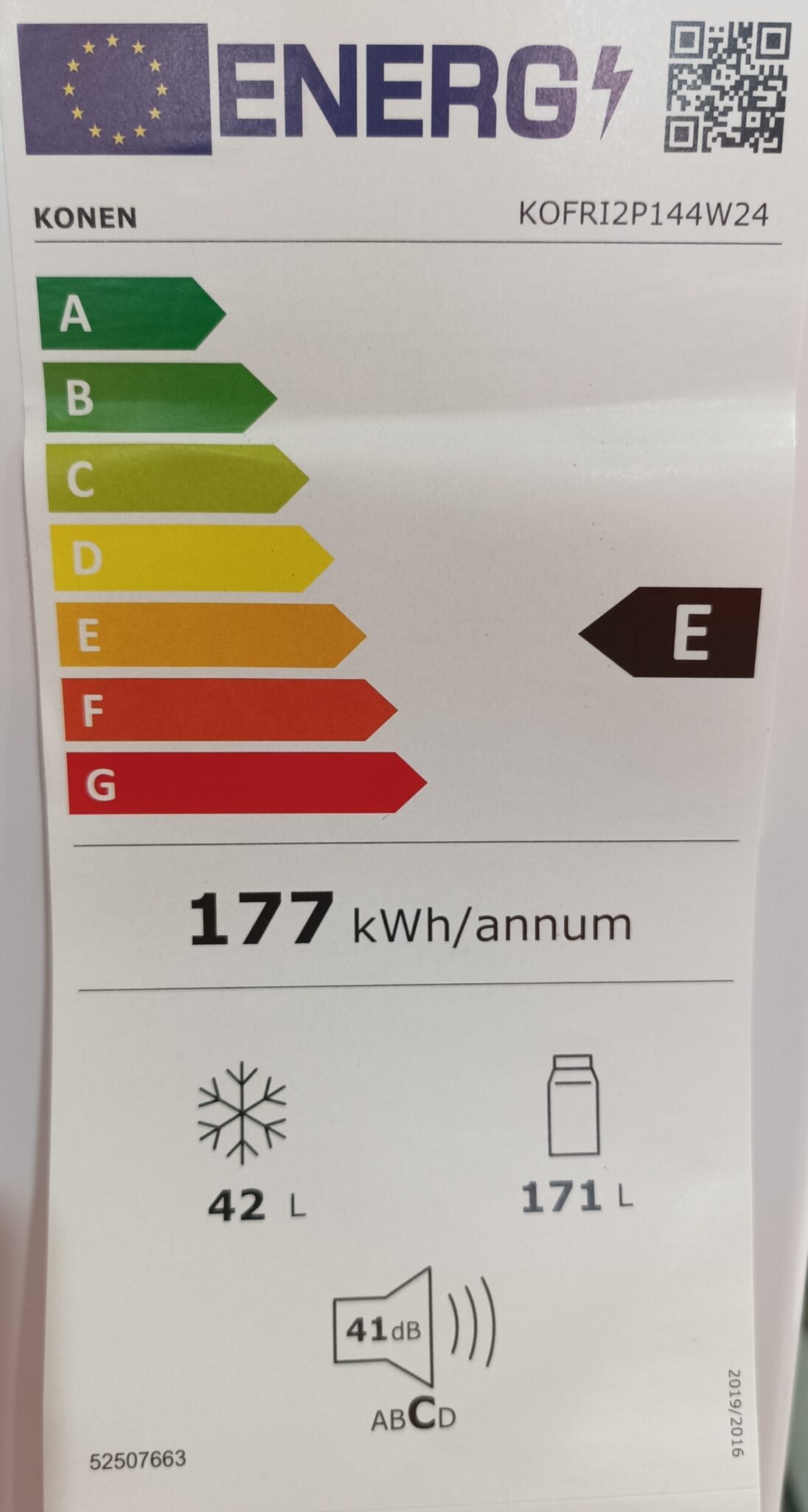 Consumo energético anual: 177 kWh/annum