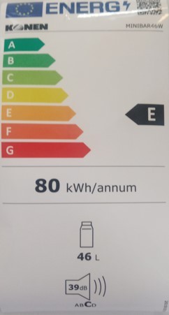Frigoríficos Konen ofrece el MINIBAR46W, un compacto frigorífico blanco de 46 litros ideal para espacios reducidos. Su diseño de una puerta y eficiencia energética clase E lo hacen perfecto para oficinas o dormitorios, combinando funcionalidad y estilo en un electrodoméstico confiable y accesible.