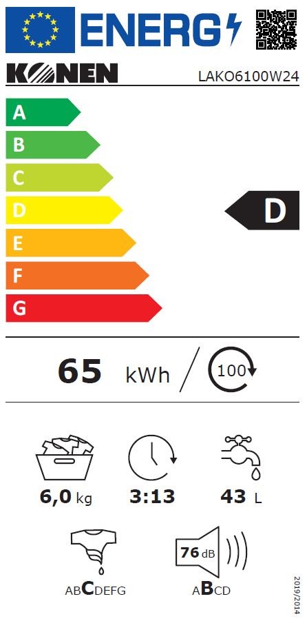 Lavadora Konen LAKO6100W24 Blanco, 6 kg, 1000 RPM, D.