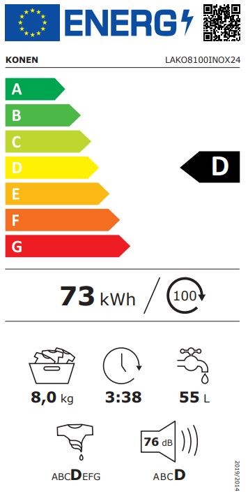 Lavadora Konen LAKO8100INOX24 8 kg, 1000 RPM, D, Dark silver.