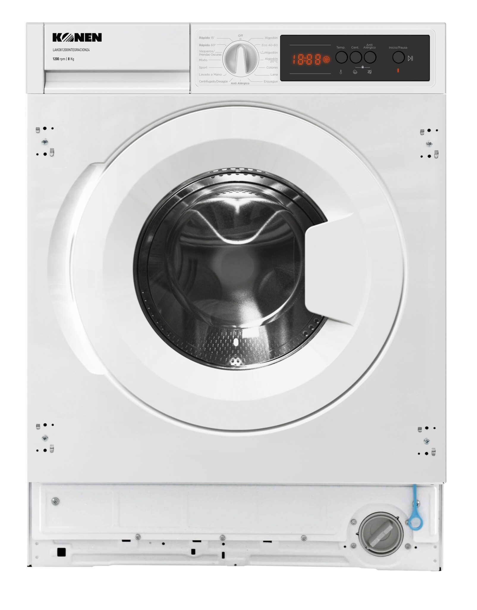 Lavadora Konen LAKO81200IN24 8 kg, 1200 RPM, A.