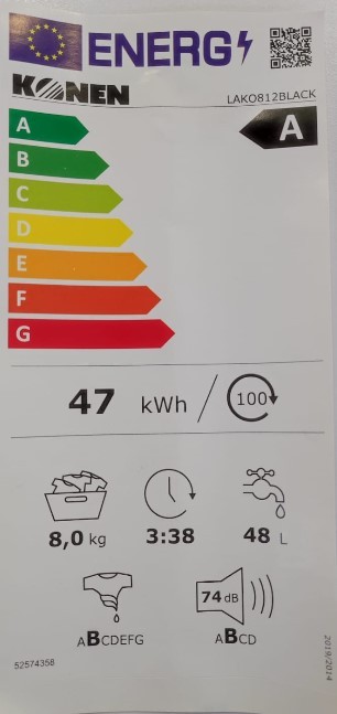 Consumo energético: 47 kWh / 100 ciclos