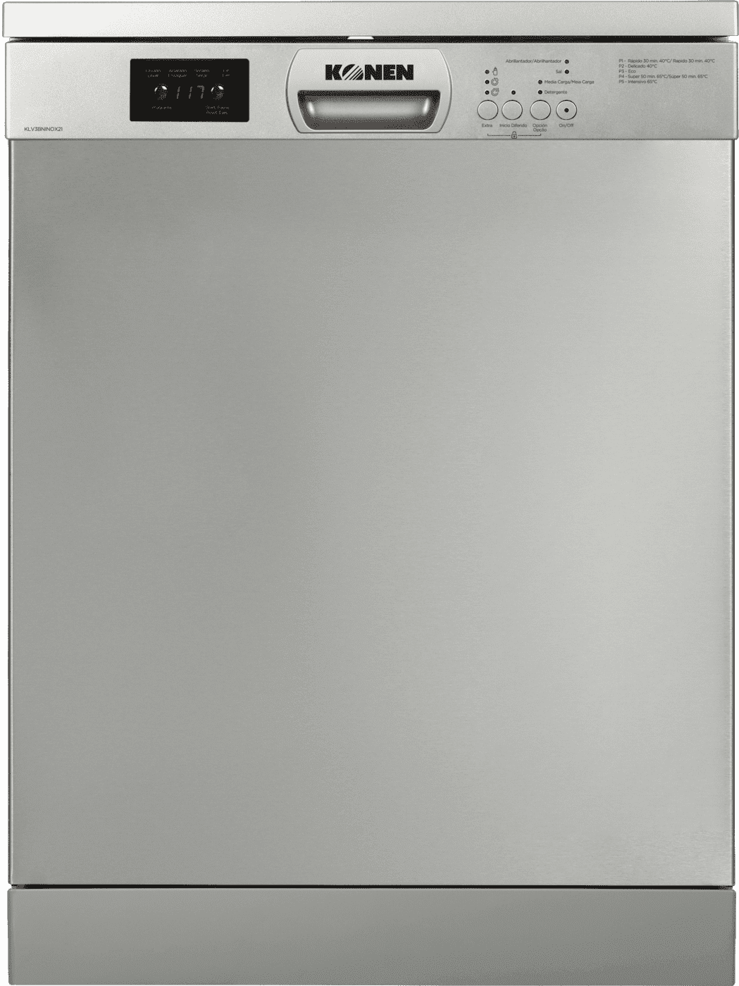 El lavavajillas Konen KLV3BNINOX21, con capacidad para 13 cubiertos, destaca por su elegante acabado en acero inoxidable. Con 60 cm de ancho y 85 cm de alto, ofrece eficiencia energética E y un diseño de tamaño completo que se adapta perfectamente a cualquier cocina moderna.